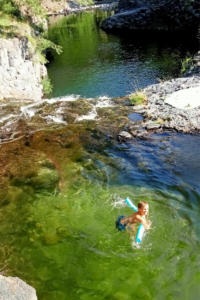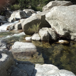Camp 2 / terrain arboré en bord de rivière permettant le parkour en rivière et la baignade. Constructions de cabanes.
